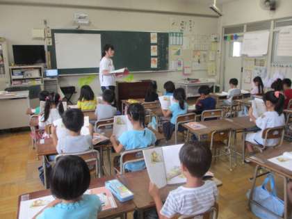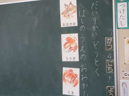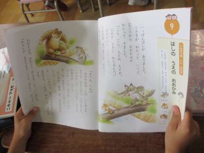 1年生の教室では、道徳の授業をしていました。前にも本ホームページで紹介しましたが、本年度より道徳が教科化されました。教科書をもちいて心の育成にも取り組んでいます。