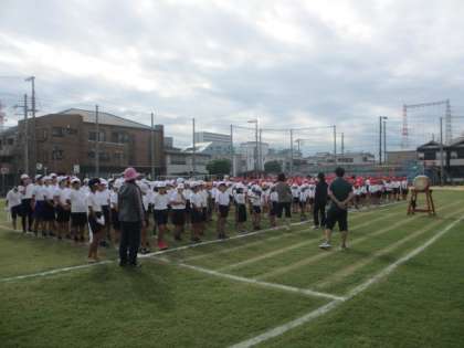 本日1限目より、1年生から6年生までそろって、運動会の全体練習を行いました。子どもたちは本番を楽しみにして、一生懸命練習に取り組んでいます。