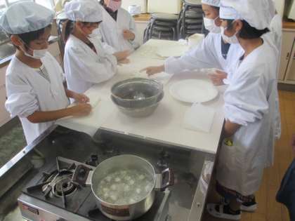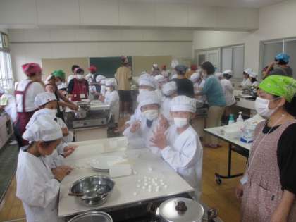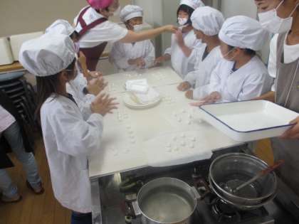 3年生は、はぐくみネットワークの授業で、お月見の会を行いました。地域の方々に教えていただきながら、楽しそうに月見団子を作っていました。