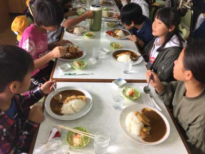 昼食のカレーは給食よりすこし辛かったみたいです