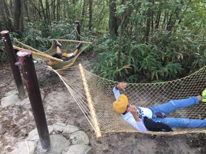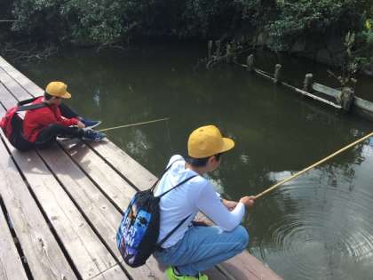 ハンモック、ザリガニ釣りをしています。