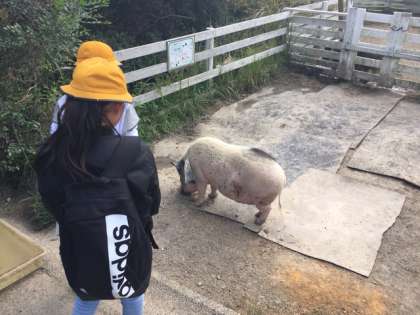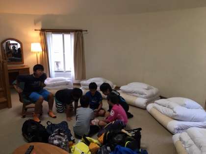 ミニブタショーを見学後、宿舎となるコテージに移動し、入所式、その後各部屋に分かれて荷物整理をしました。