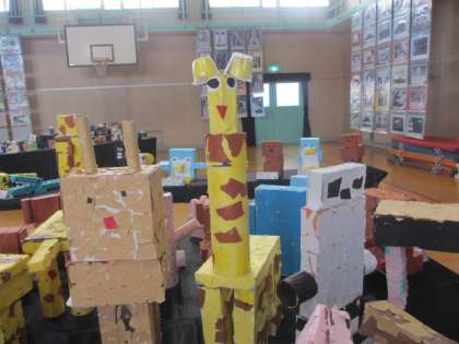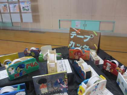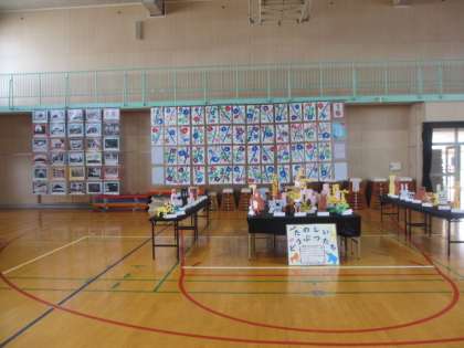 体育館で全学年の作品を展示しています。
