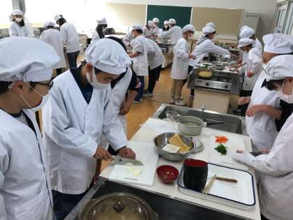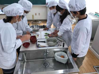 本日5年1組は家庭科の調理実習で、清江田でとれたご飯を炊き、みそ汁を作りました。日ごろのお手伝いの成果か、素晴らしい包丁さばき???を見せてくれる子どもが多く、とってもスムーズに完成しました。