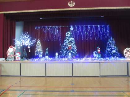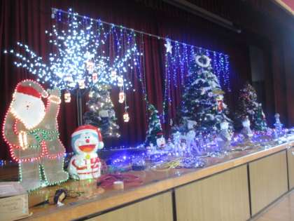 本日2学期の終業式をむかえました。先日の肝だめしのときのイルミネーションも全校児童に披露され、色とりどりに輝く電飾に、歓声があがりました。