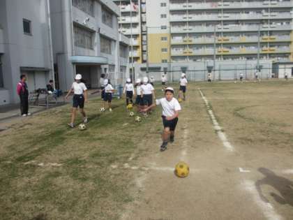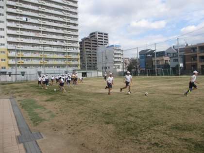 学校では、寒さを吹き飛ばすように、元気に運動場で活動をしています。5年生の体育ではサッカーが行われていました。今、サッカーはアジア大会が行われていますが、清江小学校からも未来の全日本に出場する選手が出てほしいなと思っています。