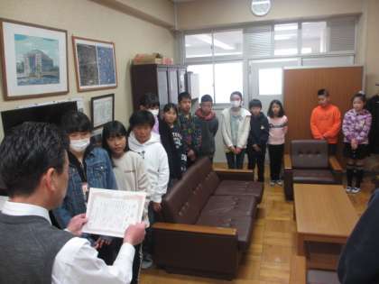 さて、学校では本日、代表委員の表彰が行われました。半年間、児童の前に立って頑張ってくれました。お疲れ様でした。この経験を、今後に生かしていってほしいと思います。