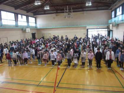 本日、1年間の締めくくりである修了式を迎えました。大きな事故等もなく本日を迎えることができたのも、お支えいただいた地域・PTAのみなさま、多大なご理解とご協力をいただきました保護者のみなさま、そして日々がんばって成長を見せてくれた子どもたちのおかげであると感じています。ありがとうございました。