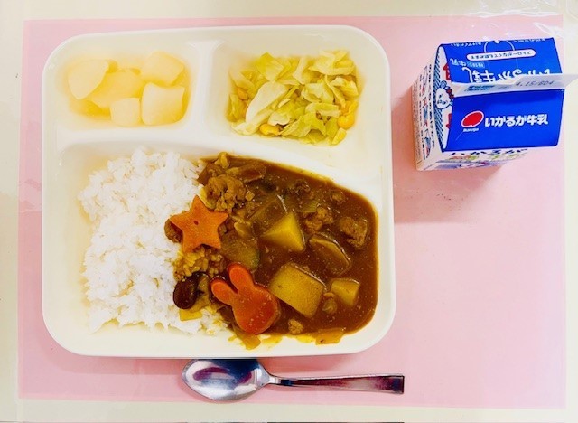 今日のカレーライスは、具材に金時豆(ドライパック)を使用しています。金時豆特有のホクホクとした食感が楽しめる献立でした。