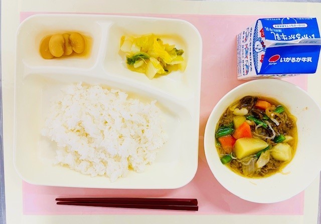 肉じゃがは、毎回好評な定番の煮物です。どのクラスの食缶も、空っぽになって返却されていました。