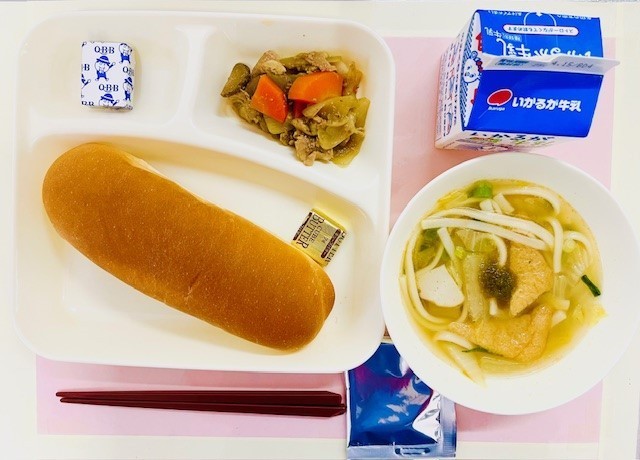給食の「なにわうどん」は「きつねうどん」をイメージしています。
