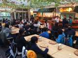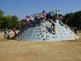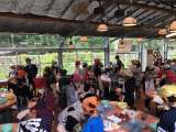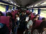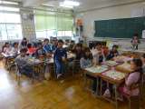 6年生を乗せたバスが、長原インターチェンジを降り、長居公園通りを学校に向かって走...