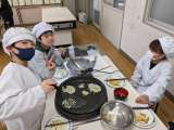 2月8日(水)、5年1組で調理実習を行い、チヂミを作りました。