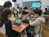 2月10日(金)、3年1組の社会科学習の様子です。タブレットを活用し意見をまと...