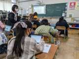 2月8日(水)、6年生、理科授業の様子です。タブレットを使い、考えをまとめてい...