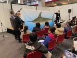 シーフードショーの小学校おさなか学習会に到着です。