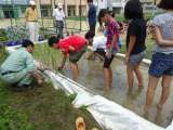 6月15日(水) 5年生が地域の方と一緒に学習園の田んぼで田植えをしました。は...