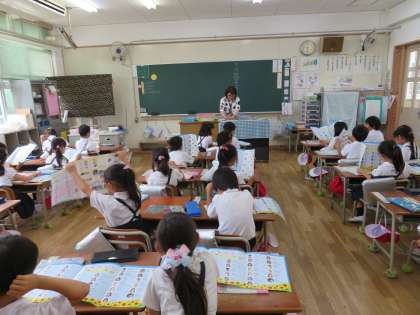 1年生にとっては初めての通知票をもらいました。担任の先生から名前を呼ばれ、前に出てもらっていました。先生から頑張ったことを一言づつ言ってもらってもらってました。きっとドキドキしてもらっていたのではないでしょうか。その間、PTA新聞をしっかり読んでんでいました。