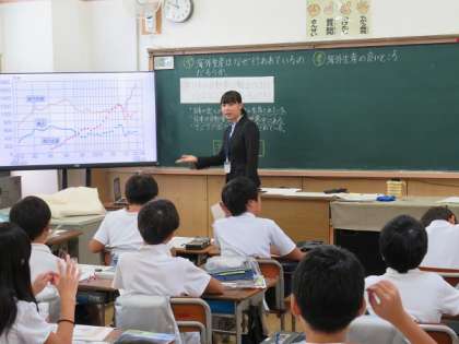 教育のまとめとして教育実習生が実習のまとめとして研究授業をしました。緊張しながらの授業でしたが、子どもたちにわかってもらおうとする意欲が強く感じられました。子の意欲を忘れず教職を目指してほしいと思います。