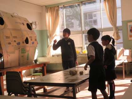 ボールを魔小野穴に入れると音が出て何の音かを充てるゲーム