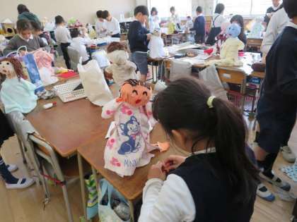 2年生が生活科の学習で赤ちゃん人形を作りました。中のペットボトルには水を入れ本物の赤ちゃんの体重とくらいにします。作った人形を抱いたり散歩させたりあやしたりして自分も同じように大切に育てられたことや命の大切さを学びます。子どもたちは手慣れた様子でだっこしかわいがっていました。
