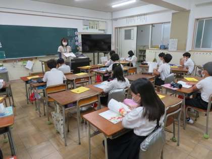授業が始まりました。今までの登校日には漢字学習の進め方やノートの使い方、音読、プリントの答え合わせなどをしていました。今日からは教科書を使っての学習が始まりました。