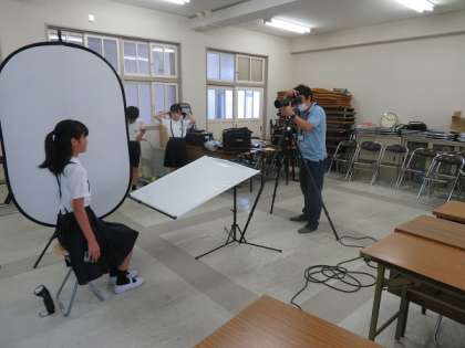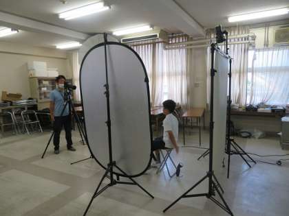 卒業アルバムの個人写真の撮影が行われました。生涯学習ルームで一ずつモデルになって気分で撮影しました。朝一番には、学級写真を玄関で撮りました。
