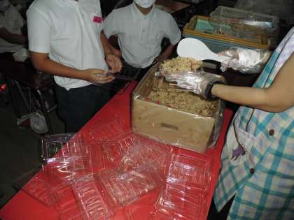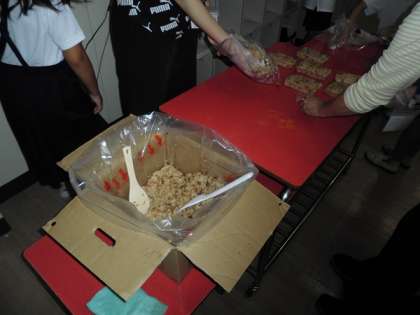 3年生は、区役所の方に協力していただいてアルファー米をたきました。できるまでの間に紙の器づくりをしたり大阪ガスからもらった災害の時の漫画を見たりしました。