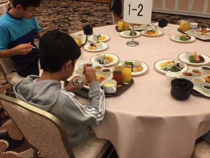 夕食です。盛りだくさんのおかず。食べきれない子もいました。