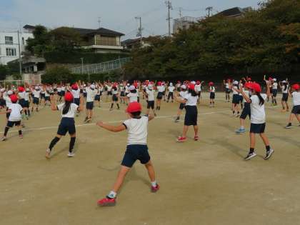 今週、金曜日に行うスポーツデーの学年の演技を見合いました。当日は自分の学年ともう一つの学年の演技しか見ることができません。ほかの学年の演技も見たいという声が出てきたので急遽他の学年の演技を見る時間を設けることにしました。互いの演技を見ることで自分たちの演技をさらに完成度の高いものにしようと意気込んでいるようでした。