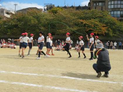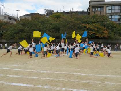 6年生はリレーと長縄とフラックをしました。長縄は、1分間で100回に跳ぶことに挑戦しました。フラッグの演技は風邪を切る波多野音が力強くカッコよかったです。