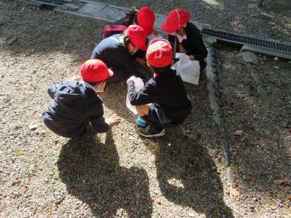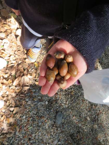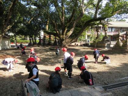 1年生が住吉大社へどんぐりを拾いに行きました。松ぼっくりを拾ってきた子もいました。たくさんのドングリを拾えました。これを使って、東粉浜フェスティバルの遊び道具を作ります。さあ、どんな遊び道具ができるでしょう。楽しみですね。