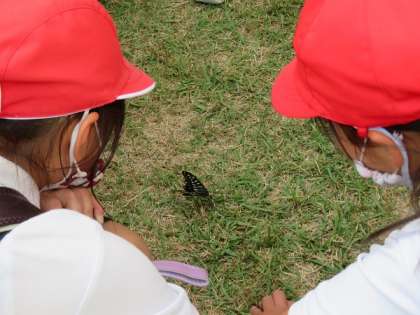 3年生の理科の時間に昆虫のことを学習しました。その時にキャベツ畑で見つけたモンシロチョウとみかんの木で見つけたアゲハチョウを幼虫から育てました。あおむしからさなぎそして成虫になるまで観察を続けました。先日は、成虫になったモンシロチョウを空に放しました。元気よく飛んでいきました。今日は、成虫になったアゲハチョウを放しました。羽が傷ついていたので心配でした。初めは飛びにくそうでしたが何とか空に飛んでいきました。