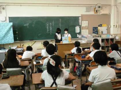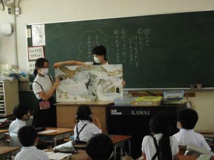 図書委員会の児童が朝の読書時間に各クラスに分かれて絵本の読み聞かせをしました。低学年の児童はとても喜んでいました。