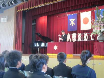 入学式では、校長先生から「初心忘るべからず、新しい自分探しの旅への船出です。自分を大切にして、頑張ってください」と、中国の故事を引用した「はなむけの言葉」がありました。