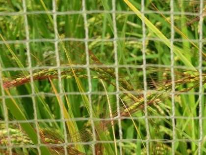 学習用田んぼの稲穂がかなり垂れ下がってきました。今年は早めに網で覆ったので雀や鳩に食べられずに済みました。赤米も順調に育っています。