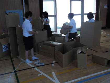 土曜授業で防災学習に取り組みました。2年生はダンボールベッド作りを体験しました。3年生は区役所から協力いただき、備蓄食のアルファー米をつくったり紙で食器を作ったりしました。4年生は棒と毛布を使って簡易担架の作り方を学習しました。6年生は胸骨圧迫とAEDの使い方を体験しました。いつ起こるかわからない災害に備え、自分の命を守ることの大切さを学習しました。