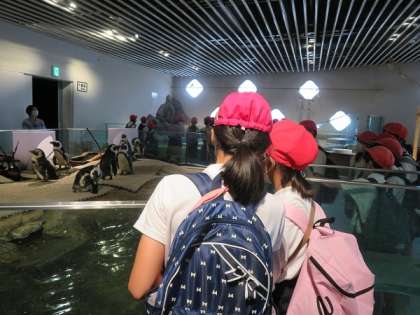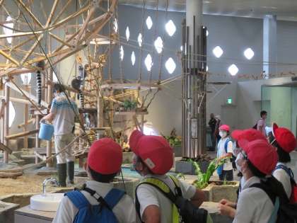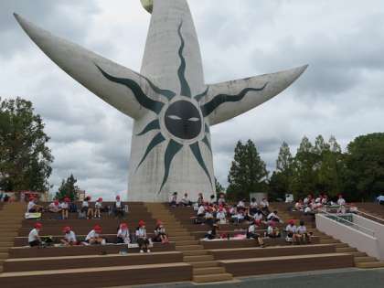 ニフレルの後は、万博公園にもどってお弁当です。とてもハードだったので足はがくがくおなかはペコペコでした。お祭り広場では階段状になった観客席で全員前を向いて黙食しました。中にはおにぎりや卵焼きを自分で作ったという男の子がいました。さすが5年生ですね。
