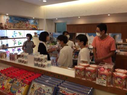 風呂と買い物タイムです。家族一人一人に「何がいいかな?」と考えながら選んでいました。