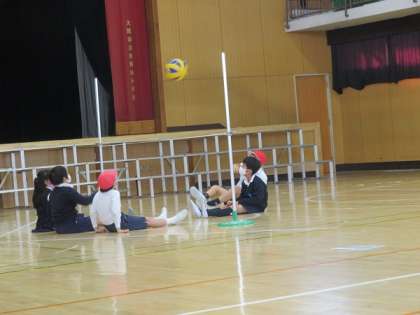3年生は、パラリンピックのことを紹介してくれていました。「ボッチャ」「シッティングバレーボール」そして、ラグビーやフェンシングで使われる車いすの紹介やパラリンピックのマークの意味、メダルについて調べたことを発表したり実演したりしていました。