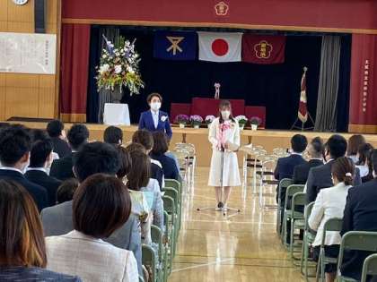式の後、教室で、2年生の学校の様子の紹介動画を見て、さらにワクワク期待感が高まったようです。