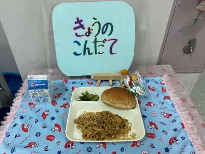 焼きそばは、好きな子が多いですね。おかわりしている子もたくさんいました。