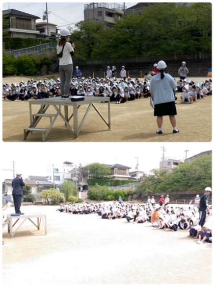 2時間目、今年度初めての避難訓練を行いました。