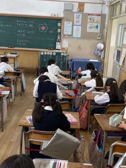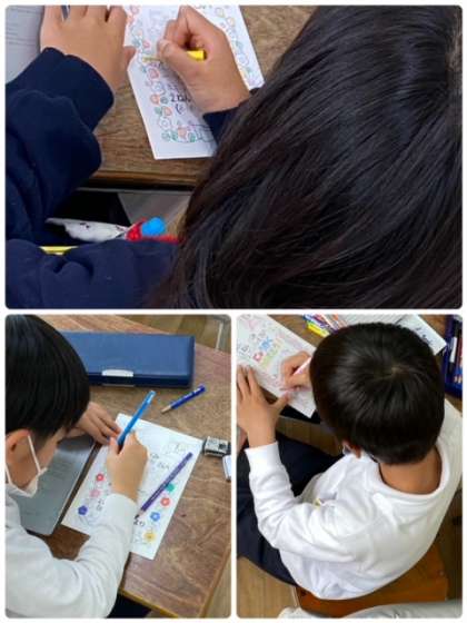 今週行う予定の1年生との学校たんけんに向けて、メッセージカードを作っていました。