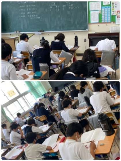本日は、全国学力学習状況調査の日です。6年生が対象です。1時間目は国語です。集中して取り組めています。