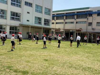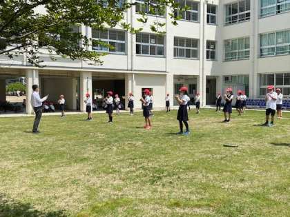 6年生が、中庭でリコーダーの学習をしていました。今週は、雨模様と言われていますが、今日はとてもいい天気なので、気持ちよく演奏していました。暑さ対策も含め、短時間の練習としていました。