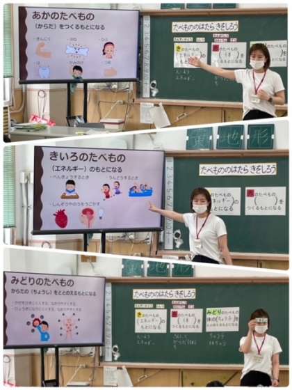 赤、黄、緑の3色に分類され、それぞれの働きを学び、バランスよく食べることの大切さを学びました。