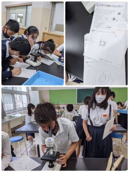 ジャガイモとツユクサの気孔の観察をしています。