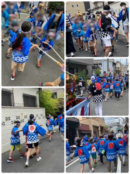 地域の方々と共に、子どもたちが元気なかけ声とともに、神輿をひいていました。