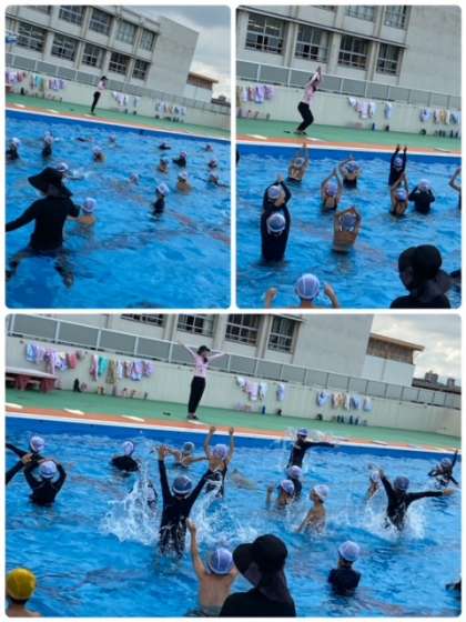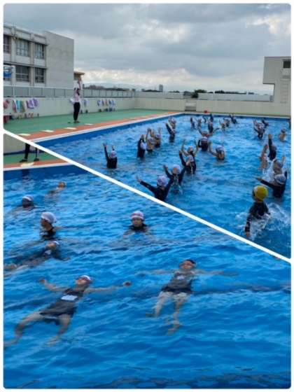 いい天気のもと、プール学習を行っています。